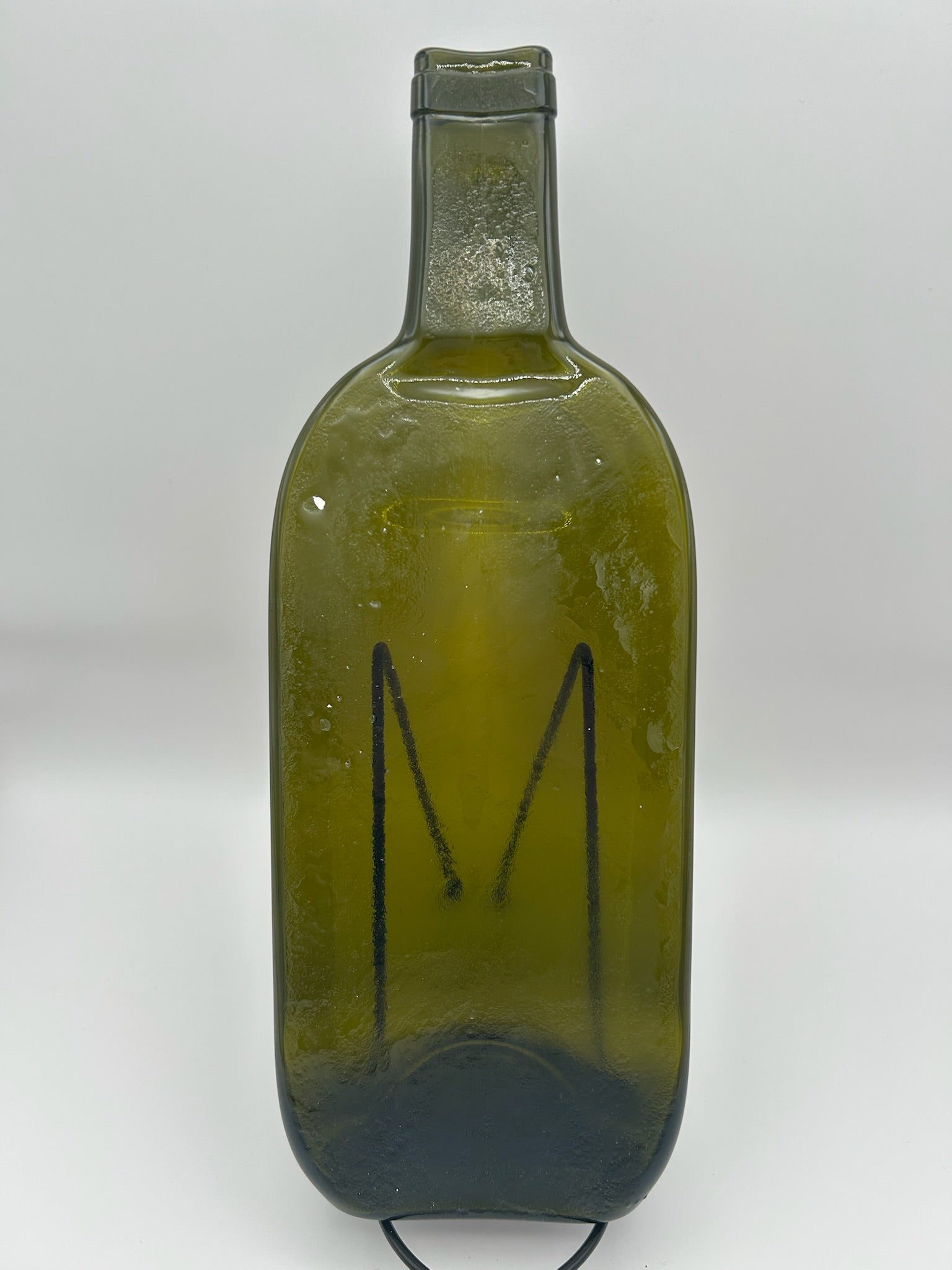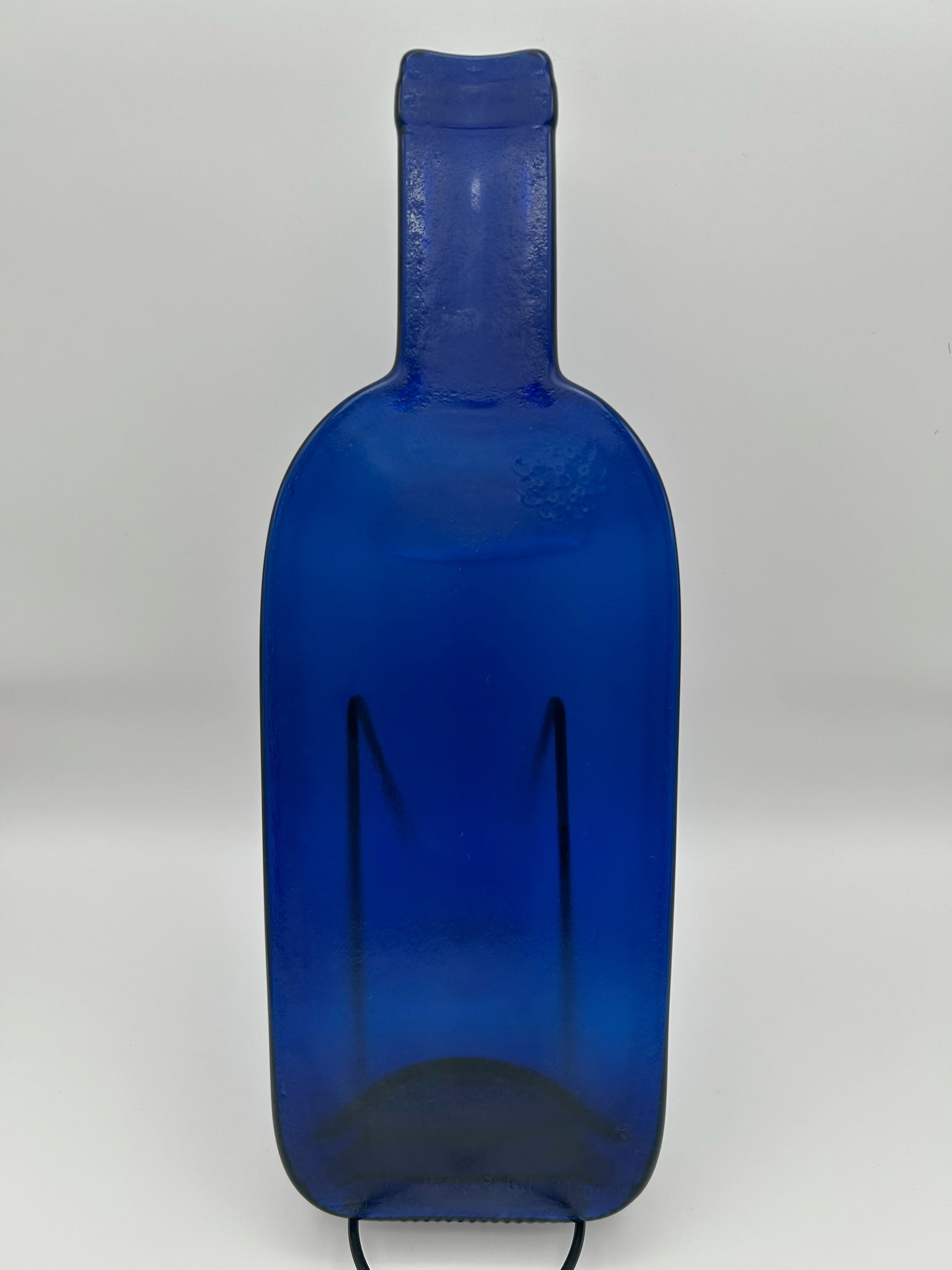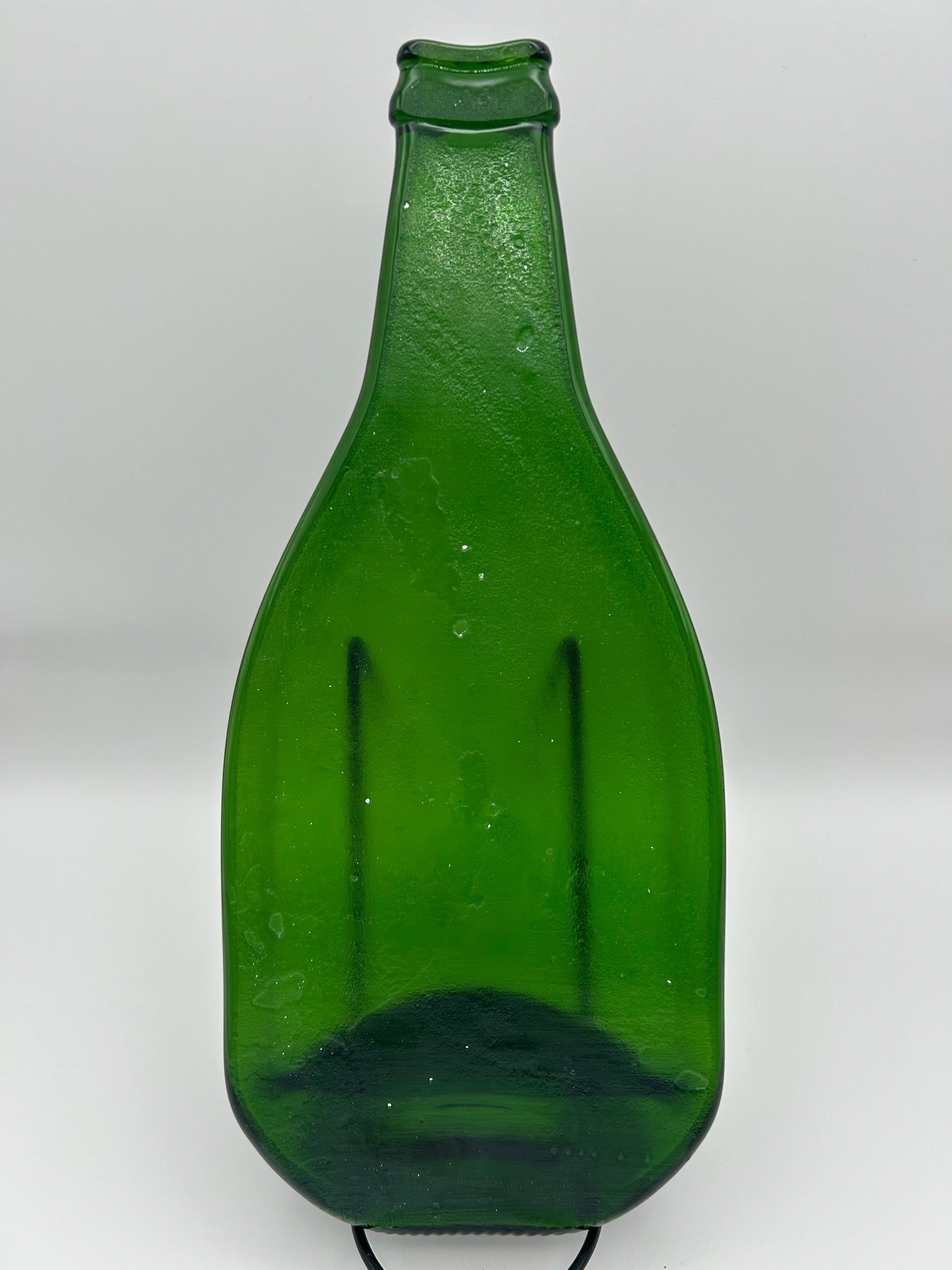 slumping process forms a bottle that is flat, with a raised neck, a shallow bowl, or a clock