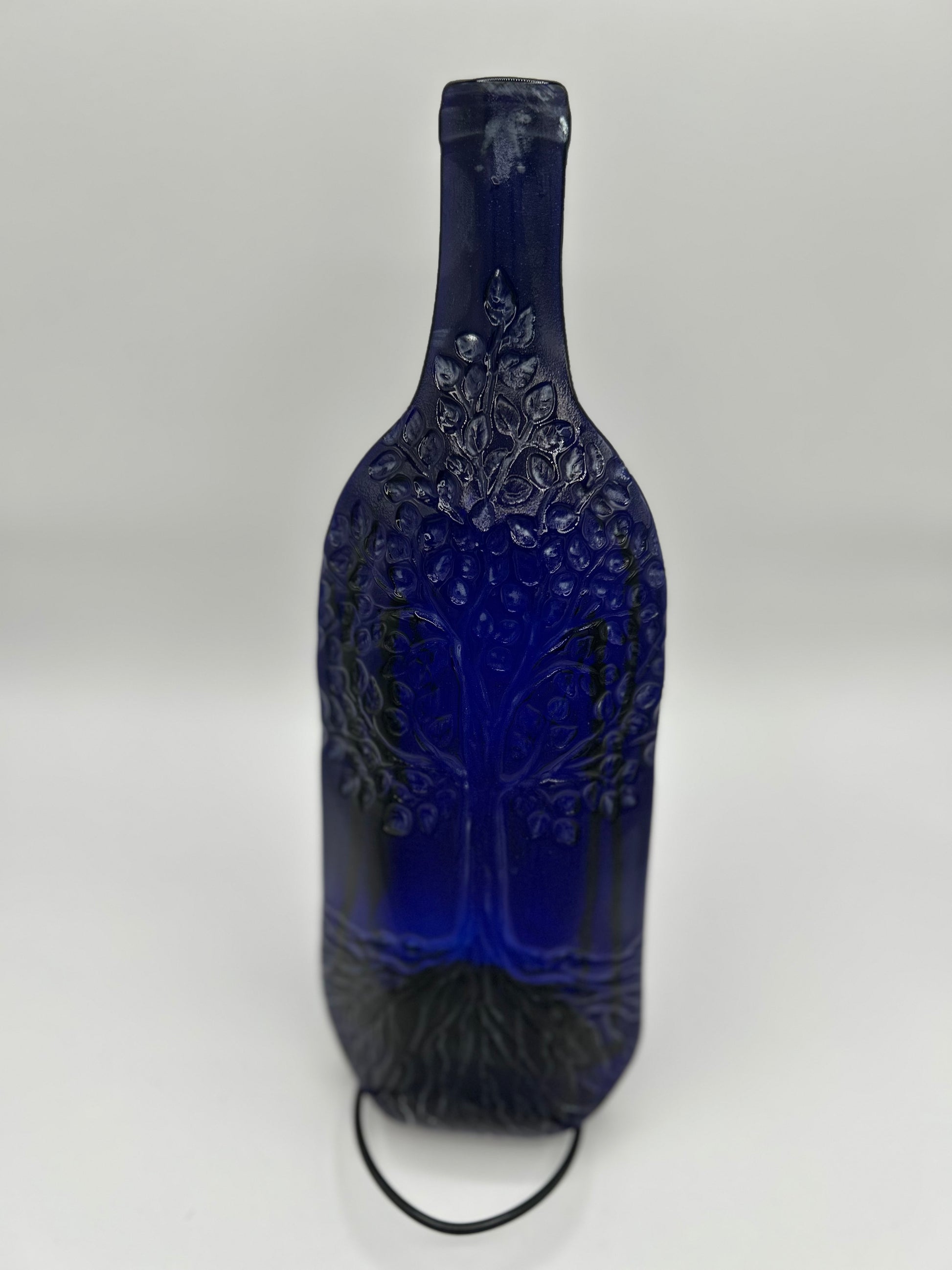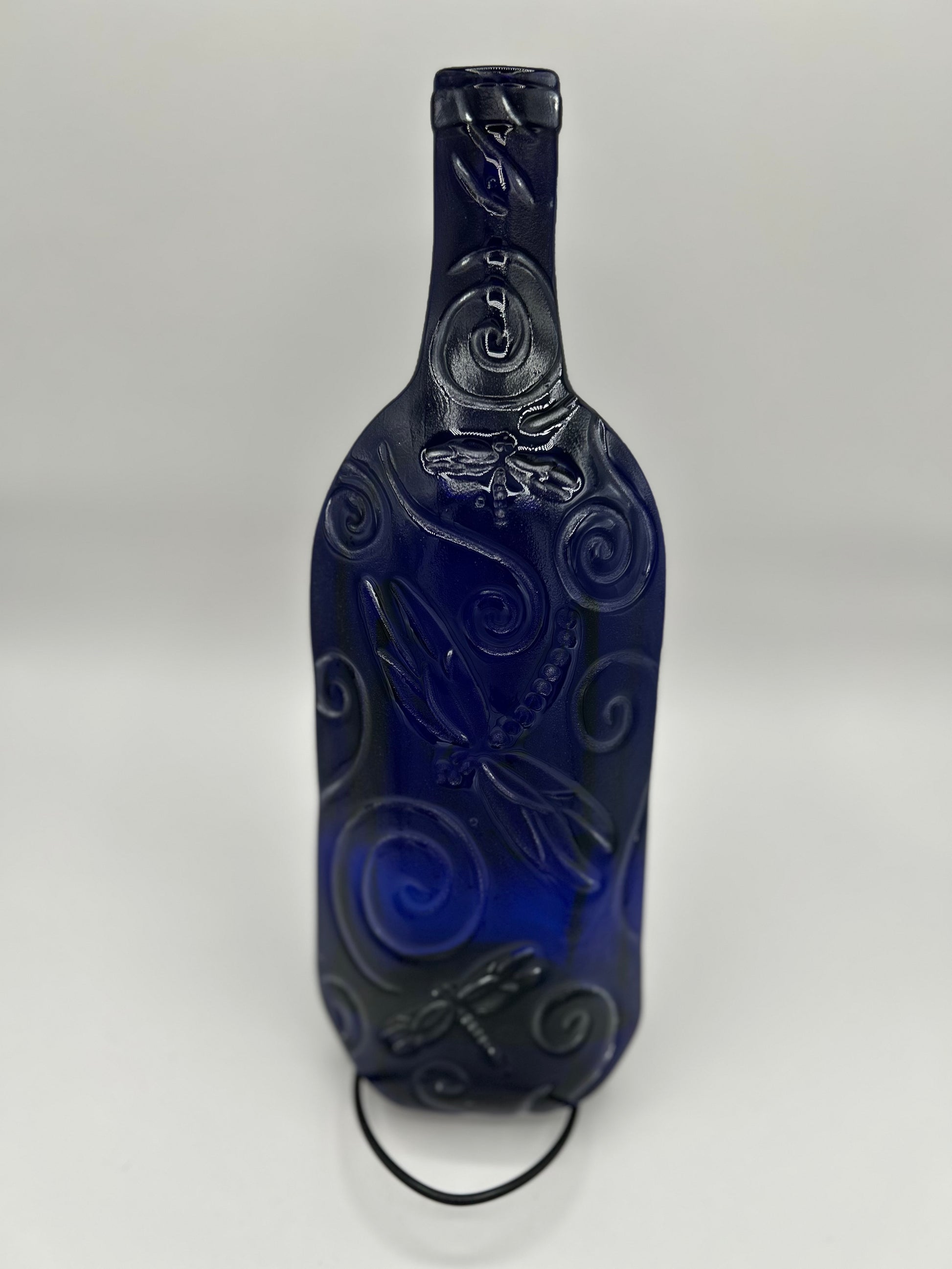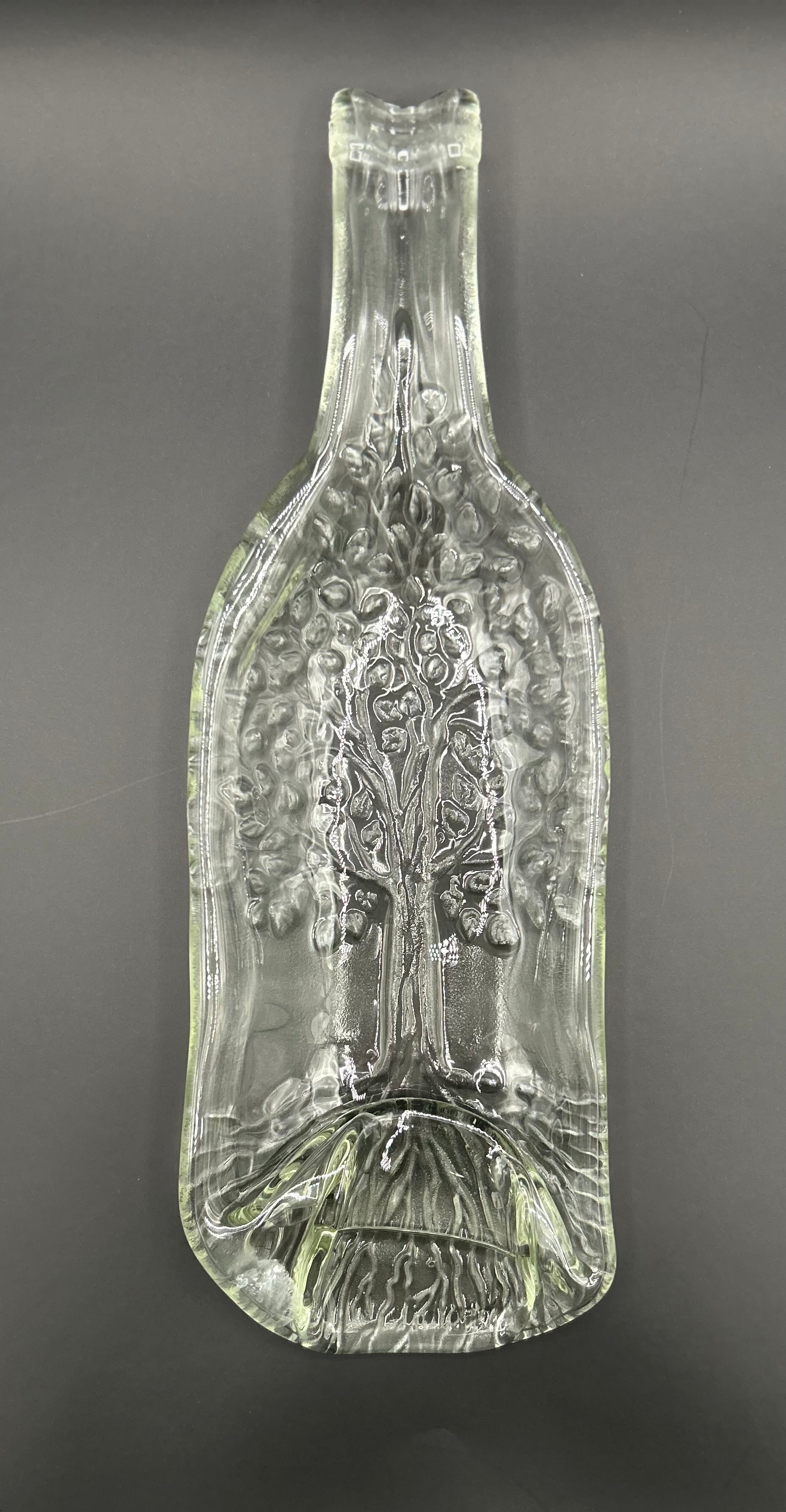 Slumped embossed shallow bowl made from wine bottle. Variety of custom embossing patterns available.